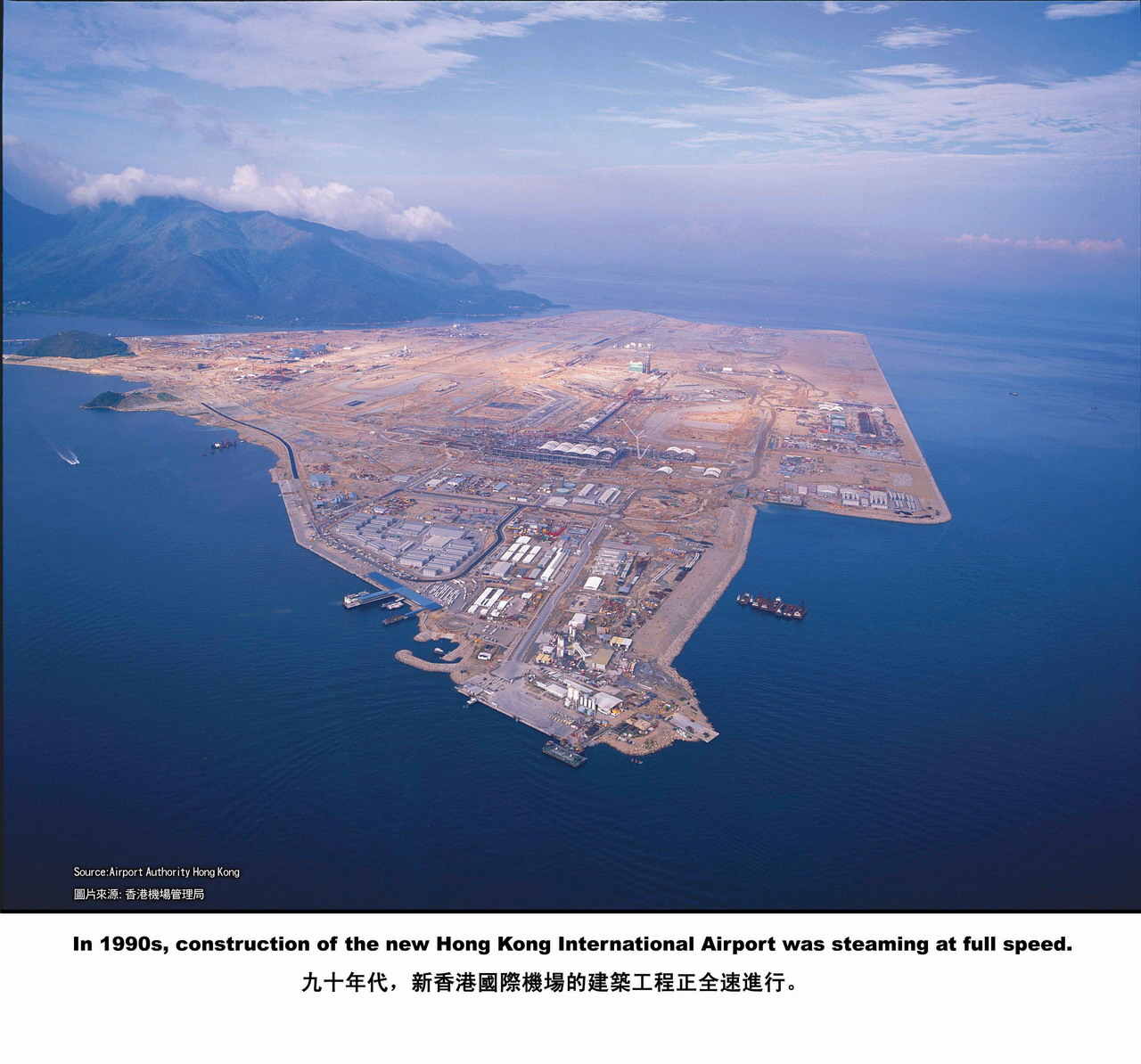 The Passenger Terminal Building and the major buildings and facilities on the island have been completed after years of hard work by many labourers, day and night. From about mid-1997 onwards, the Airport Authority gave repeated assurances that by April 1998 the new airport would be ready.[13]