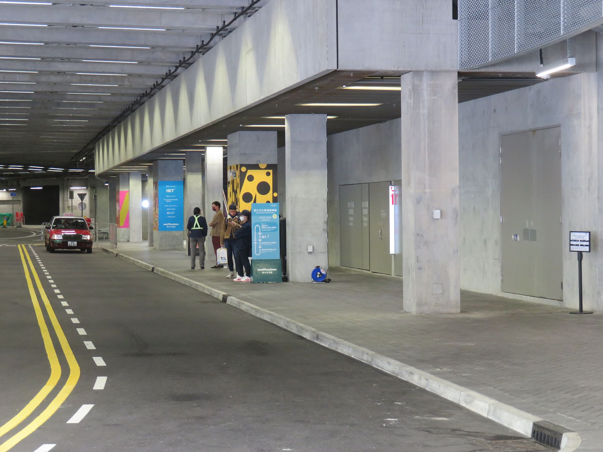 Free shuttle bus that travels between M+ and Bus Stop at Western Harbour Crossing picks up here (July 2022)