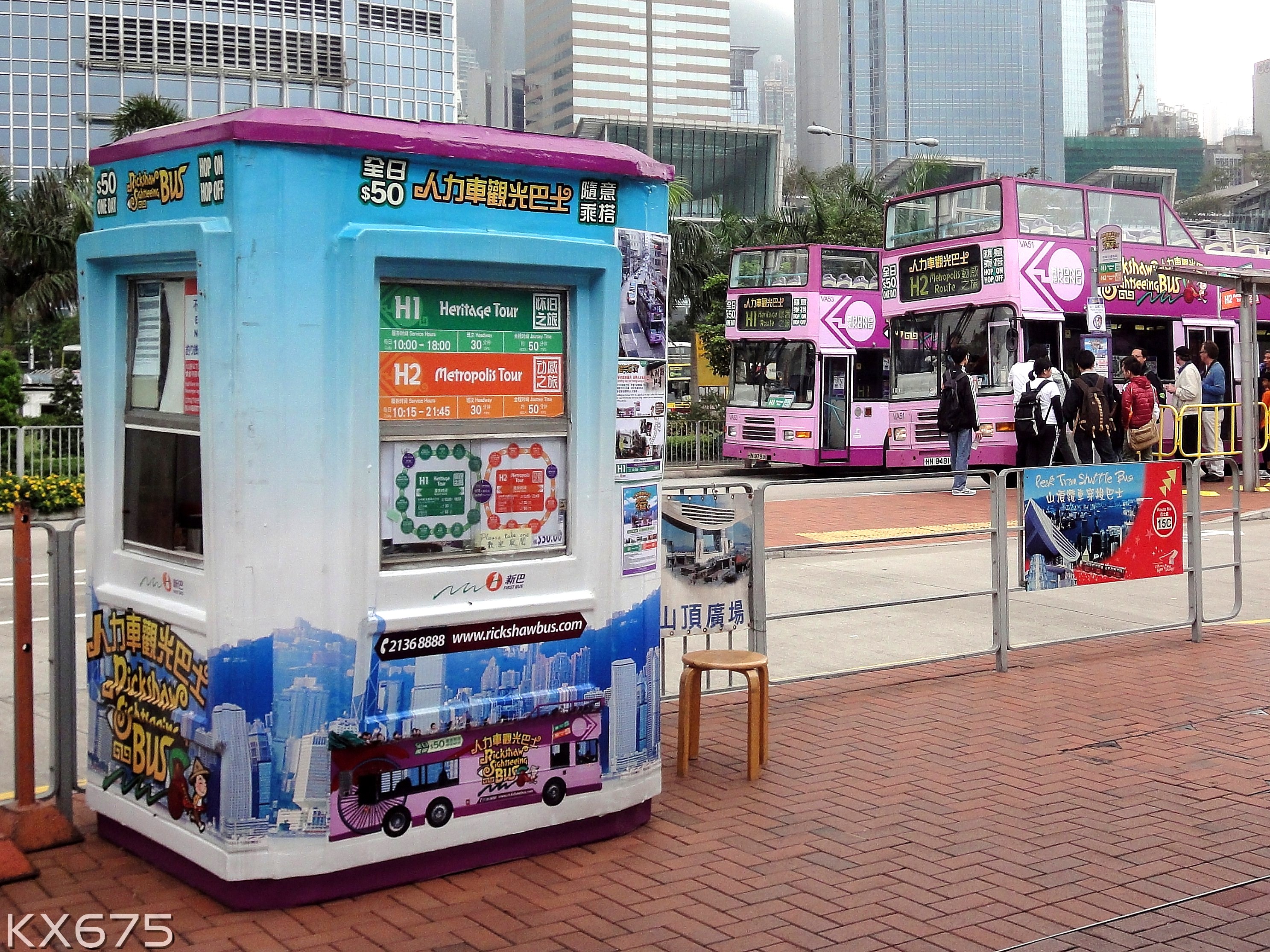 - Rickshaw Sightseeing Bus Kiosk (Central (Star Ferry) Bus Terminus) where passengers can buy directly from the bus captain or regulator on-duty
