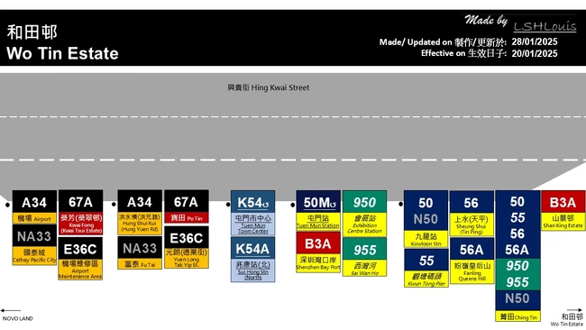 | Bus routes using "Wo Tin Estate" stop on Hing Kwai Street southbound | ||||